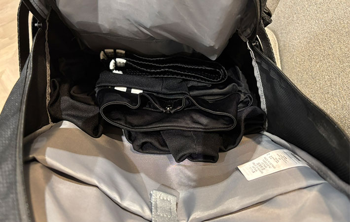 参考までに、上下セットアップのジャージをたたんで入れた様子がこちらです。