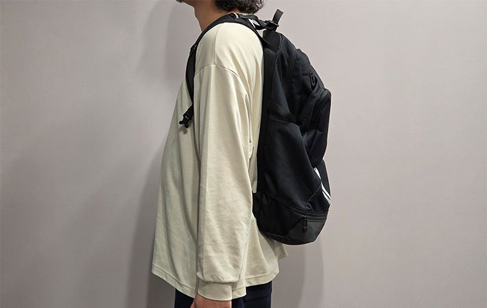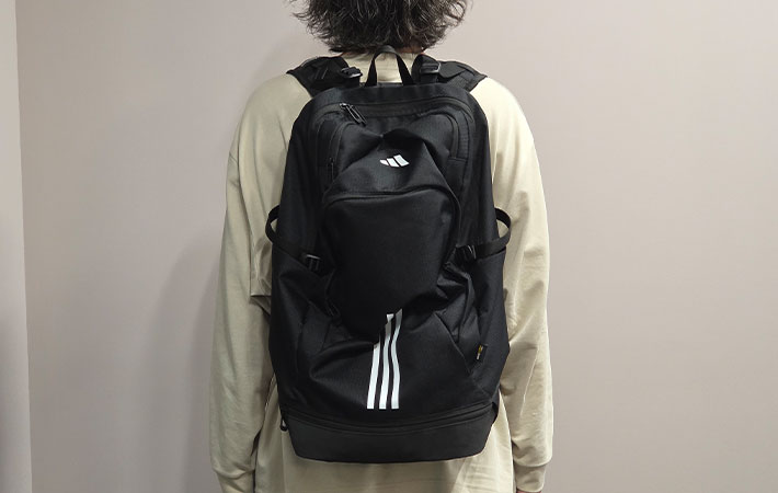 通勤で3か月使ってみて分かった、アディダスのリュックの良いところ・気になるところ ファッション By - akira 更新:2025-10-31 ※本記事はUPDATEが独自に制作したコンテンツです。また、本記事を経由して商品の購入が発生した場合に、ECサイト等から送客手数料を受領することがあります。 通勤時に、リュックを使っている人も多いのではないでしょうか。 ちなみに、筆者は10年来のリュック派。荷物をたくさん入れられて、移動中も両手が空くのが便利で魅力を感じています。 そんな筆者がネットで見つけたある1品を、3か月ほど通勤リュックとして使ってみました。 アディダスのリュックを、通勤で3か月使ってみた 本記事で紹介するのは、人気スポーツブランド『アディダス』が販売している『イーピーエス バックパック40』です。 Amazonで見る 楽天市場で見る 【スペック】 サイズ(約):幅32cm×高さ59cm×奥行き17.25cm 重量(約):1.05kg 容量(約):40L 強度が高いことで知られる合成繊維『コーデュラ』を使用し、撥水性も備えたリュックとなっています。 こちらは、筆者が通勤リュックとして3か月ほど使用した『イーピーエス バックパック40』。 平日を中心に、晴れの日も雨の日も使ってきたので多少へたれた感じはありますが、問題なく使用できています。 3か月間通勤リュックとして『イーピーエス バックパック40』を使って感じた、使いやすい点と気になった点は次の通り。 【使いやすい点】 ・シンプルな構造で、中身を確認しやすい。 ・全体的に、荷物がたくさん入る。 ・荷物をたくさん入れて重くなっても、背負いやすい。 【気になった点】 ・荷物がたくさん入るため、リュックのポケット類をフル活用できない場合がある。 ・リュック本体のサイズが大きく、人によっては背負いづらい可能性がある。 ・撥水性はあるが、大雨でも耐えられるような防水性は期待できない。 ここからはリュックの特徴に触れながら、メリットとデメリットをそれぞれ見ていきましょう。 ポケット3つのシンプル構造で、2泊3日の旅行もバッチリ 荷物を入れるスペースは大きく3か所あり、メインとなるスペースにはノートパソコンを収納できるスリーブが付属。 大きくガバッと開き、中身を確認しやすい構造です。 ノートパソコンはもちろん、薄手のアウターならクシャッとまとめてラフに入れることも可能。 衣類を丁寧にたたんで小さくすれば、2泊3日程度の旅行でも対応できるでしょう。 参考までに、上下セットアップのジャージをたたんで入れた様子がこちらです。 衣類以外のものを入れることを考えても、十分余裕があります。 なお、取り出す頻度が高い小物類はリュック上部の小さめなポケットにまとめてIN。 小さめとは言っても、モバイルバッテリーや長財布、そして新書もすっぽりと入るので、筆者はこのポケットをよく使っていました。 このほかにもやや大きめのポケットが1つありますが、筆者の場合は上記2つのポケットで事足りてしまったので、この3か月間まったく使用していません。 内ポケットが2つついているので、スティック状のものを差し込むなどして活用できそうですね。 荷物が多くても重くない、不思議な背負い心地の秘密とは? 『イーピーエス バックパック40』を背負ってみた様子がこちら。筆者は身長180cm後半ですが、それでもかなり縦長なサイズとなっています。 リュックの中は普段入れている荷物をそのままにしていますが、それ以上にリュックが大きいため、形が少々崩れてしまっています。 ちなみに、別の日に多く荷物を入れた時の様子がこちら。 この時、ガジェットを中心にリュックがパンパンになるほど荷物を入れましたが、不思議とそこまでの重さを感じることなく、快適に通勤することができました。 それもそのはず、『イーピーエス バックパック40』は肩への負担を軽減できるように『ロードスプリング』という構造をショルダーベルトに採用。 ショルダーベルトの付け根あたりが伸びるようになっていて、この部分で負荷を調整してくれたのです。 荷物をパンパンに詰め込んでも、それほど重さを感じずに背負うことができるのは嬉しいポイントでした! まとめ:通勤リュックとしてはデカいけど、使い勝手は◎ 強度が強く、撥水性も備えている『イーピーエス バックパック40』。大容量でシンプルな構造が使い勝手のよさにつながっています。 たくさんの荷物を入れられる余裕があるのはいいことですが、一般的なデスクワーク程度だと明らかにオーバースペック。 ひと回り小さいモデルの『イーピーエス バックパック30』というリュックもあるので、こちらも合わせて検討するとよいでしょう。 Amazonで見る 楽天市場で見る ネットの評判も、普段から多めの荷物を入れたり、泊まりがけでどこかに行ったりする人からのものが多め。 ・ほかの45Lリュックよりも荷物がたくさん入る。収納スペースも多く、使い勝手がいい! ・日常でも、短期出張でも使えて重宝している。何よ