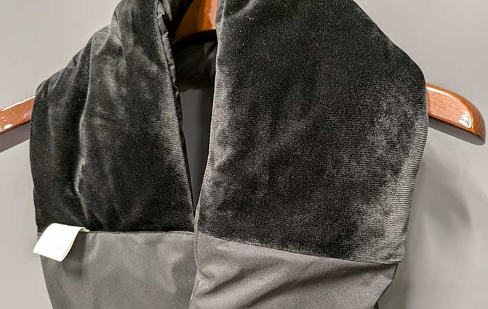 表側はポリエステルらしい質感ですが、首の当たる裏側はベロア生地になっています。