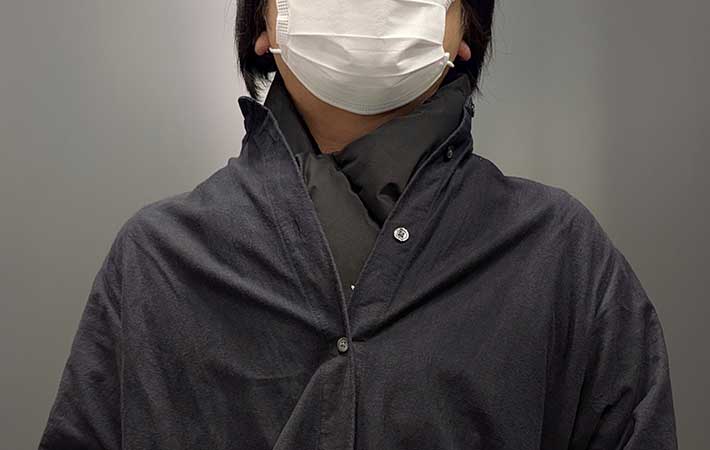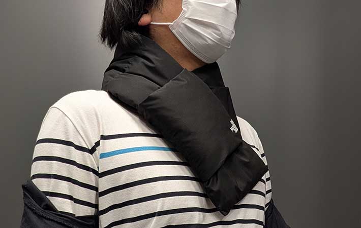長めのマフラーをグルグルと巻きつけるよりも保温性は高く感じます。