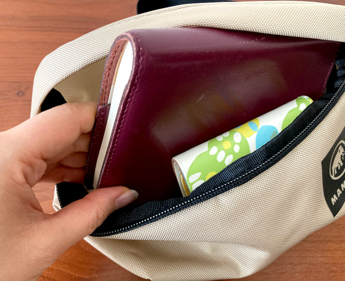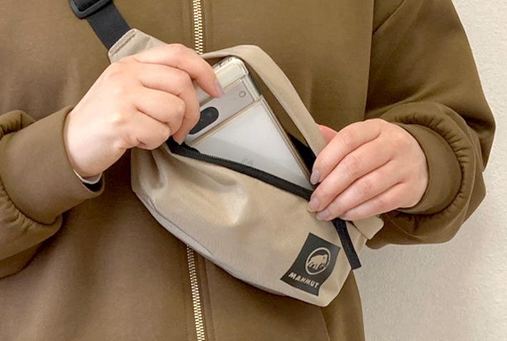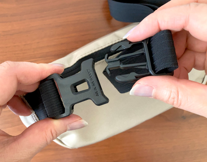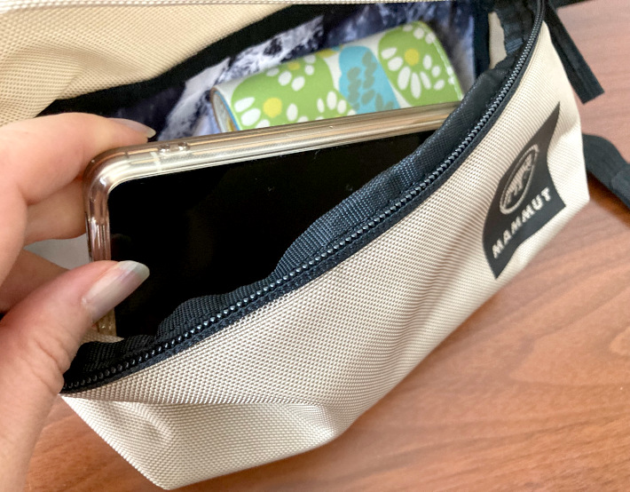 必要最低限の小物だけを持ち歩くのにちょうどよさそうなサイズ感で、何より信頼のマムートブランドのウエストバッグならと、即決でした。