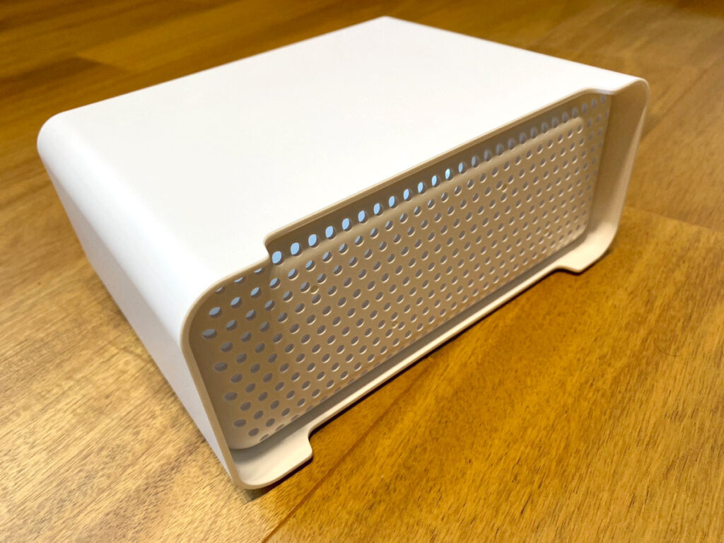 サイズは幅20cm×奥行8.7cm×高さ15cmほどで、スリムながら収納力も結構ありそう。