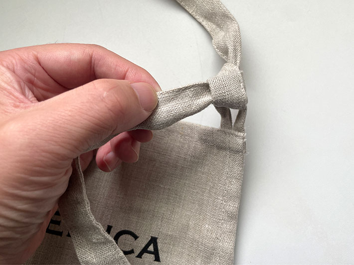 やはり「いいな」と思うのが、麻ならではのナチュラルな風合いと、そこに馴染む『DEAN & DELUCA』の文字。