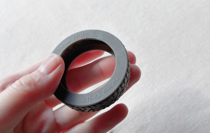 素材はシリコンでやわらかい質感。走行中の衝撃をしっかり吸収し、伸縮性があるため装着もスムーズに行えそうです。