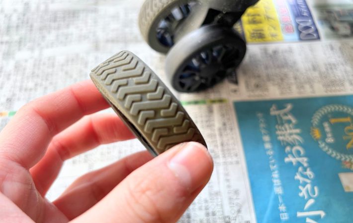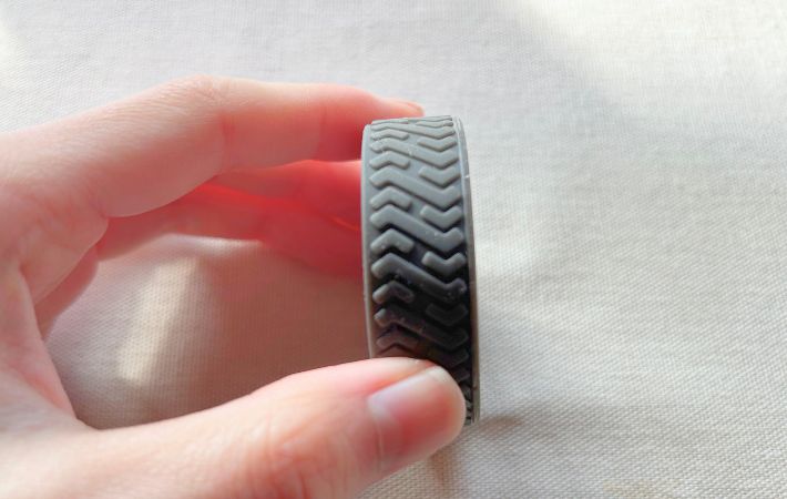 カバーをよく見ると、タイヤ模様のデザインが施されています。