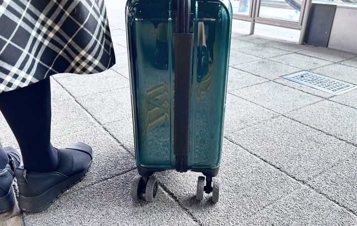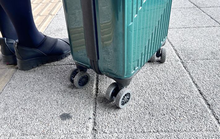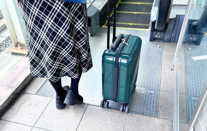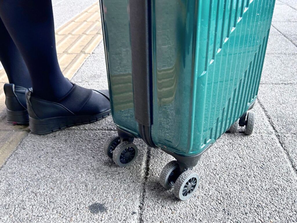 駅の舗装された道ではスムーズに転がり、エスカレーター付近のボコボコした床面も難なく走行できました。