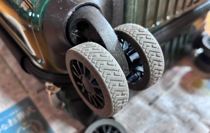 この模様が車輪をしっかり保護しながら、走行時の騒音をやわらげ、ゴミの巻き込みを防止。静かでスムーズな移動を叶えてくれますよ。