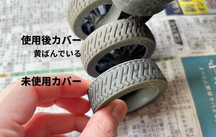 帰宅後、お土産や荷物を整理しつつ、キャスターカバーをチェックしてみると…。