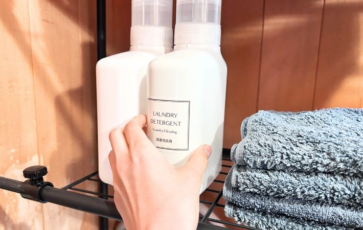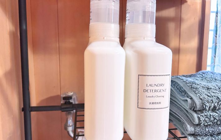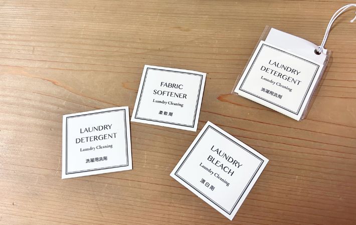 『Laundry Detergent』『Laundry Softener』『Laundry breach』と英字で控えめに印字されていて、貼るだけで中身が一目瞭然。