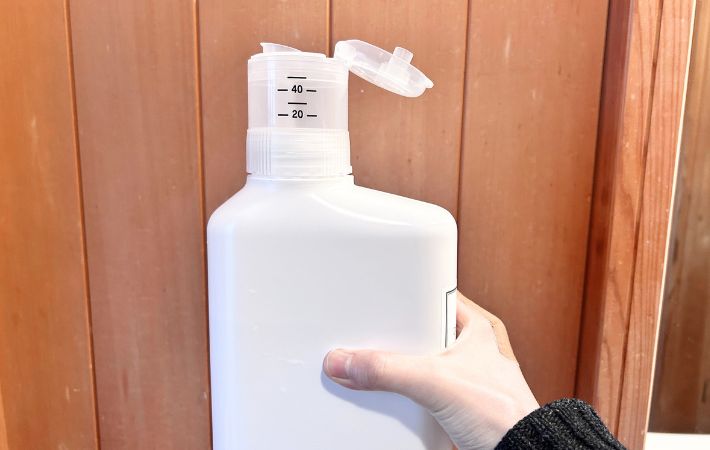 洗濯のたびに重たいボトルを持ち上げて、キャップを開けて、目盛りを見て、こぼさないようにそっと注ぐ…。