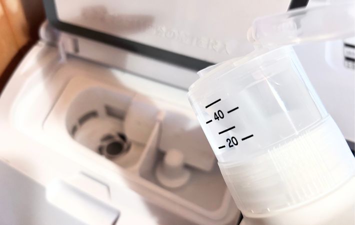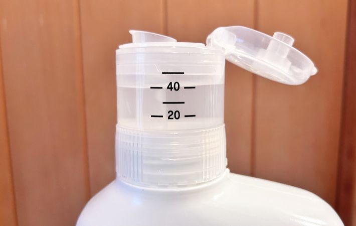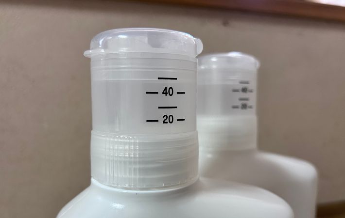計量が終わったらこのまま洗剤の投入口に注ぐだけ。