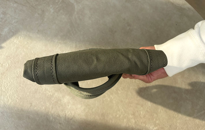 11オンスのしっかりしたコットン生地を使用。丈夫でありながらしなやかな素材で、折りたたんで持ち運ぶこともできます。