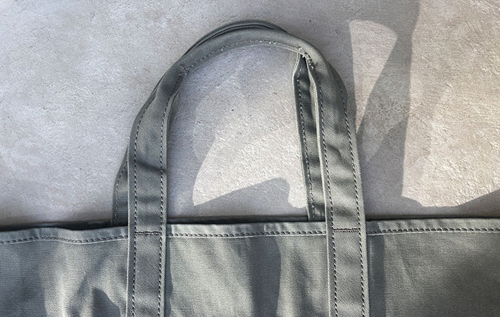 「肩にかけるには少しハンドルが短い」と感じる人は、『グローサリー・トート』よりも一回り小さくハンドルが10cmほど長い『グローサリー・トート・ウィズ・ロング・ハンドル』もありますよ。