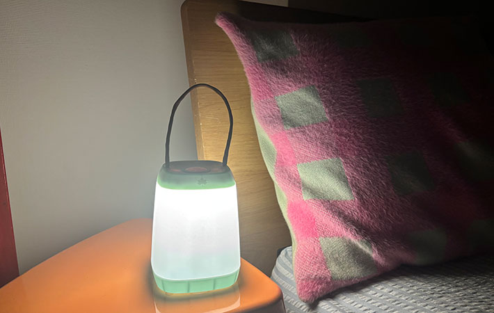 ベッドの脇に置けば、強モードでは読書灯として、弱モードでは間接照明のようにほのかに灯るナイトライトに。