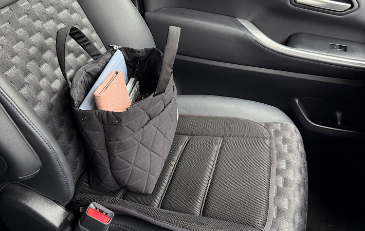 車の中でも、座席に置いたままサッと財布やポーチを取り出せてとても便利でした。