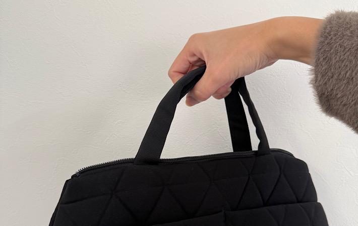 ハンドルは手持ち用の長さなので、肩掛けができません。