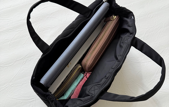 バッグの中で荷物がごちゃつかず、すっきりと整理できるのが嬉しいです。