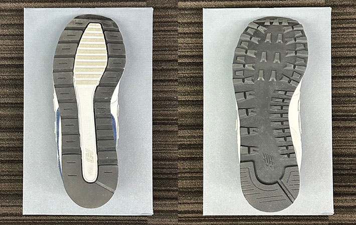 アウトソールは目に見えて作りが異なっており、『996』は舗装路でも滑りにくく、屈曲性に優れています。