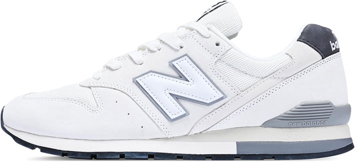 『996』全体がホワイト、Nロゴがグレーのバイカラーになっているのがポイント。足元が大きく見えたり足元だけ浮いて見えたり、膨張色である白特有のバランス感の崩れが抑えられます。