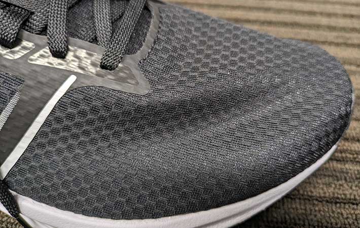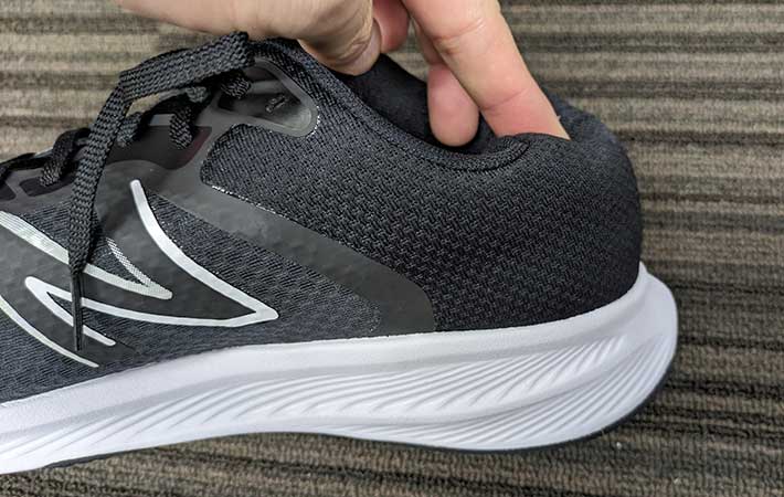 アッパーに薄いメッシュが使われているのはもちろん、つま先のガードも最小限しかなく、ヒールカウンターは簡単に曲がってしまうほど柔らかいものが入っています。