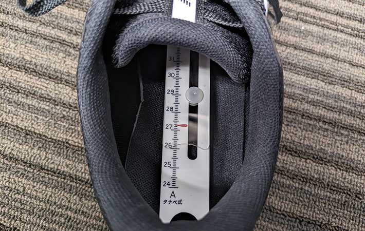 とはいえ、アッパーがメッシュ素材で伸びるため、それほど窮屈な感じはしませんでした。