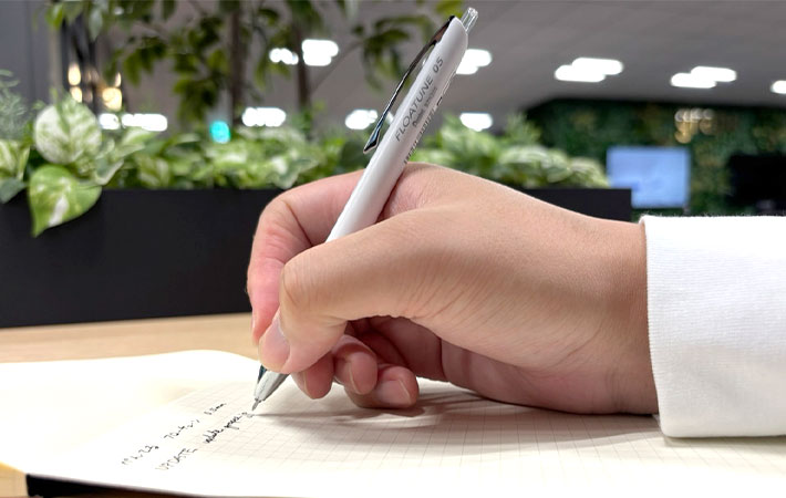 『フローチューン』は油性ボールペンですが、字を書いた感触としては非常に滑らか。