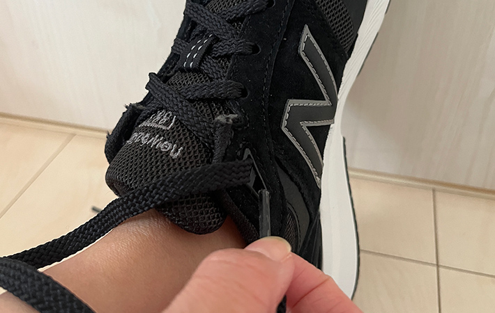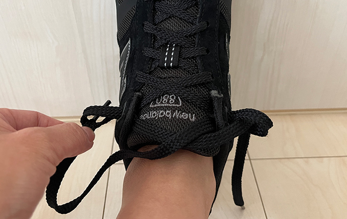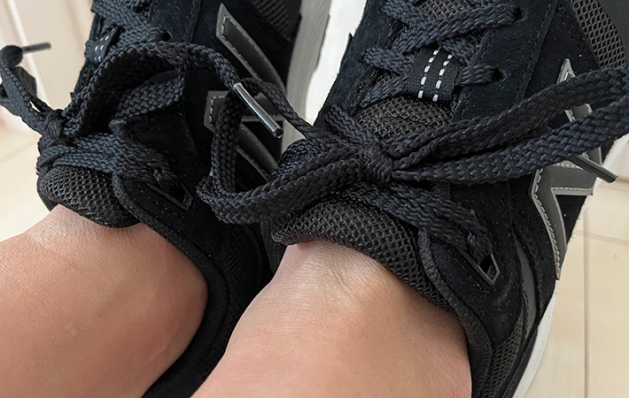 靴ひもの結び方を『ヒールロック』に変えるだけで、かかとのホールド感やフィット感が格段にアップして、より一層歩きやすくなりますよ。