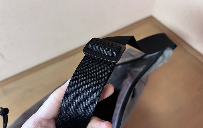ショルダー紐は調節可能なタイプ。しっかりとした質感です。