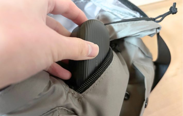 メインのスーツケースとは別にこのバッグを斜め掛けすれば、パスポートやスマホ、財布などすぐ取り出したい必需品をすぐに取り出せるように収納可能。