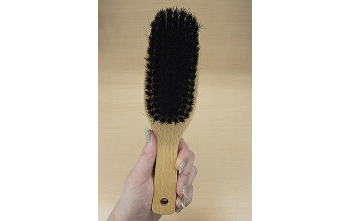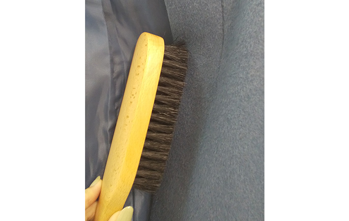 ただし、こちらのブラシに使用されている豚毛はコシがある毛のため、ウールや綿などの固めの素材でできた洋服に使うのがよさそうです。