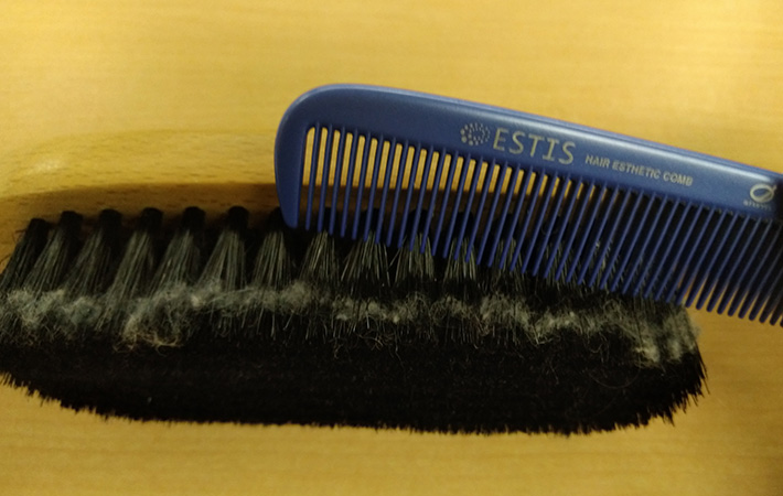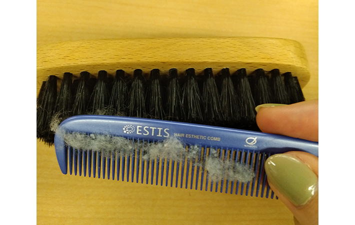 検証した結果、ブラシに付いた毛玉は手で地道に取り除くよりも、くしを使ったほうが早くきれいに取れると感じました。
