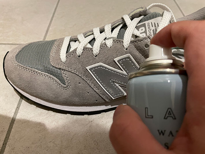まず、シューケアの最初のステップとしては、買ってすぐに防水スプレーをかけるのがオススメ。防水スプレーは、雨だけでなく汚れも予防してくれます。