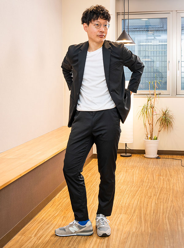 テーパードだと、『996』のスタイリッシュさも生かせます。堅苦しくなく、適度なリラックス感を持たせられるきれいめのコーディネートは万能です。