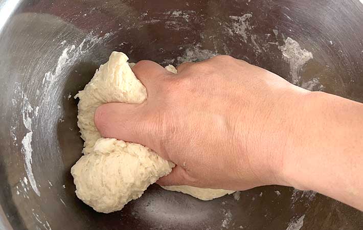 手にくっ付きやすいのが難点ですが、辛抱してこね続けると、だんだんまとまってきます。
