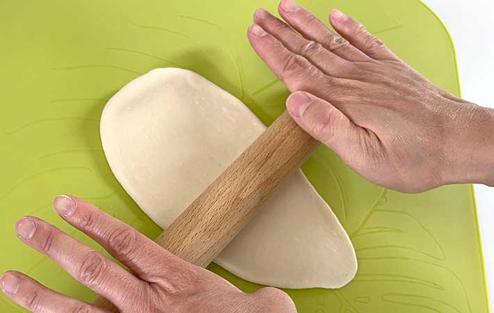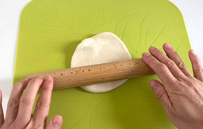 生地がくっ付きやすいので、シリコンマットやクッキングシートの上で伸ばすのがオススメです。