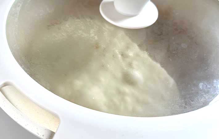沸騰したお湯に入れて5~7分、または、深めの耐熱容器に移してラップをし、レンジで温めることもできます。