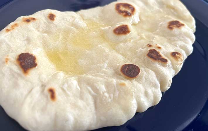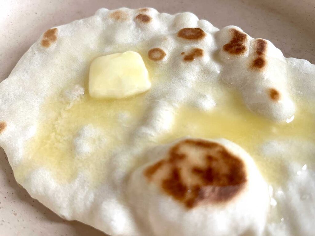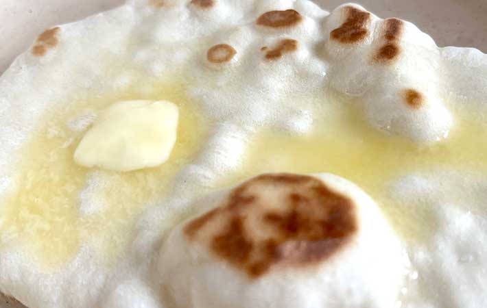 表面にナンにバターを塗ると、より本格的な味に仕上がりますよ。