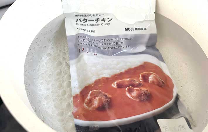ナン作りと並行して、『バターチキン』を温めておきましょう。