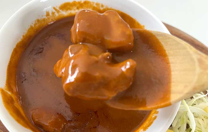 ほどよい酸味と甘み、そしてスパイスの香り豊かなコクのあるカレーは、インドカレー店の味にも引けを取らないおいしさです。