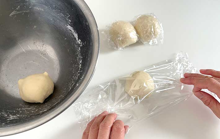 ラップをかけて室温で約10分寝かせれば、生地の完成です。