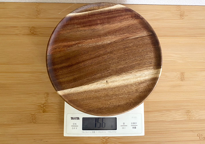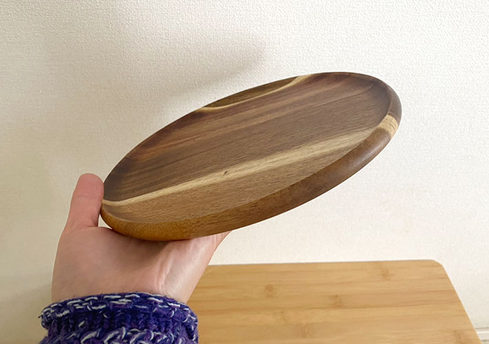 筆者が購入したのは、『アカシア お皿にもなるカッティングボード 丸型』の21cmタイプ。