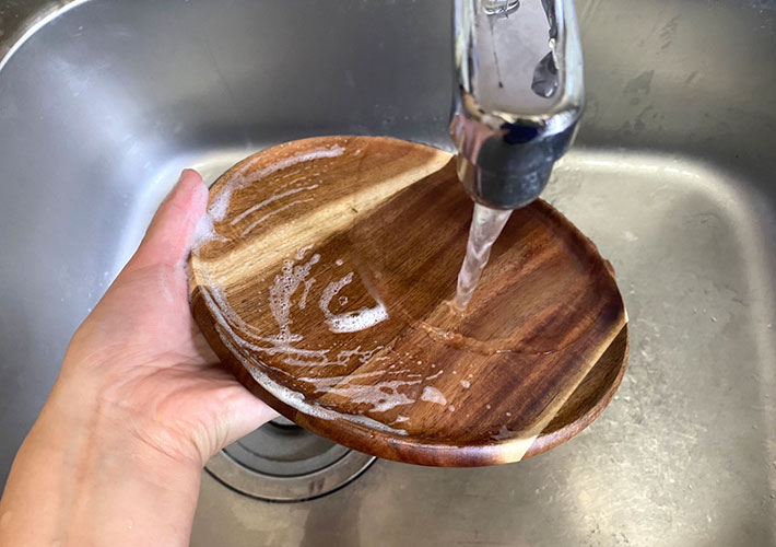表面はウレタン塗装が施されており、水洗いもOK。ただし、着け置き洗いや食洗機は使えないので注意してくださいね。