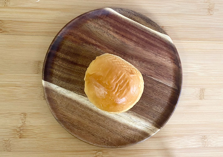試しにバターパンを乗せてみると、このくらいのサイズ感です。卵料理やウインナーなどもコンパクトに盛り付けられそうで、朝食用ワンプレートにもぴったり!