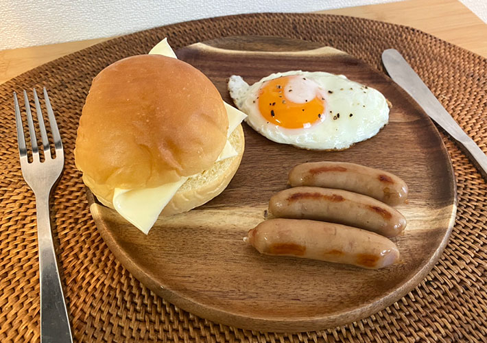 パンと目玉焼き、ウインナーをワンプレートに盛り付けるのもいいですよね。