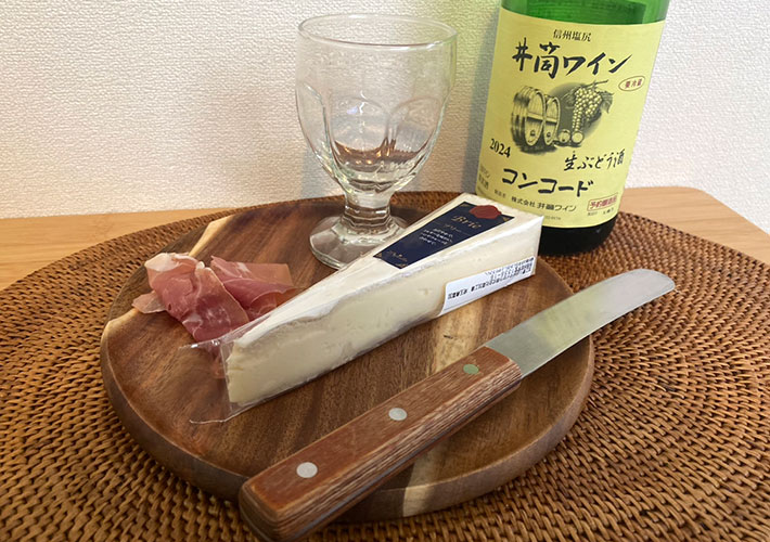 夜の晩酌には、ワインと一緒にチーズと生ハムを。