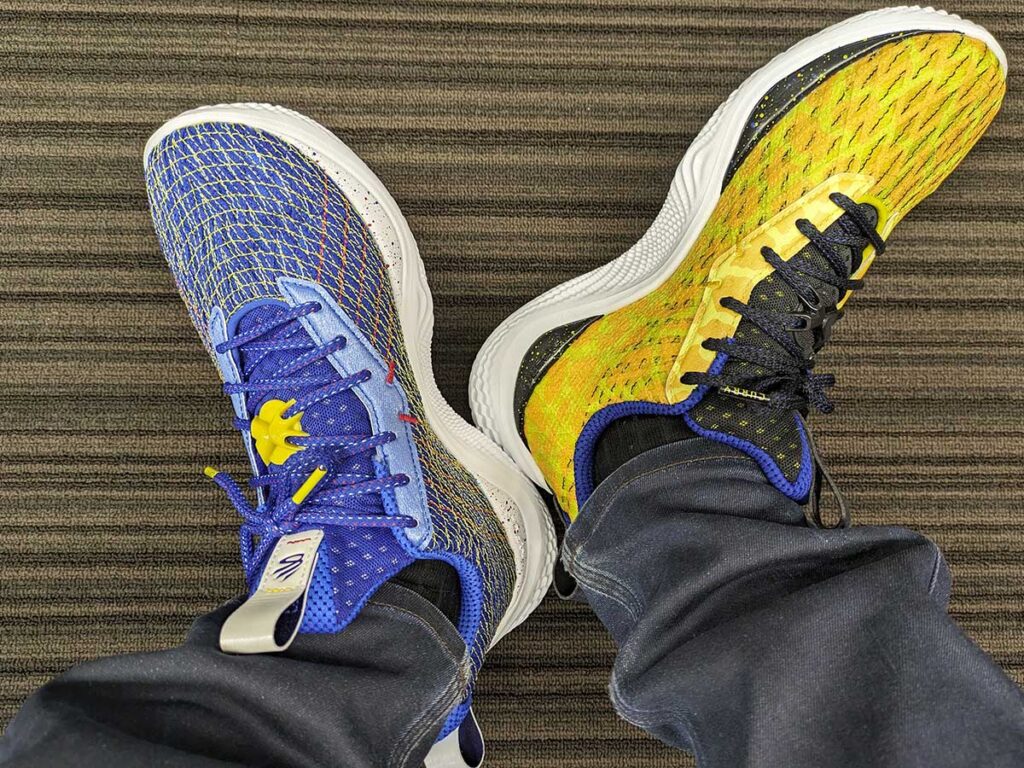 今回履いたシューズは、NBA史上最高の3ポイントシューターとして名高い、『ステフィン・カリー』の名を冠した『カリー フロー10〈DOUBLE BANG〉(以下、ダブルバング)』と『カリー フロー10〈CURRY-FORNIA〉(以下、カリーフォルニア)』の2つのバッシュ。