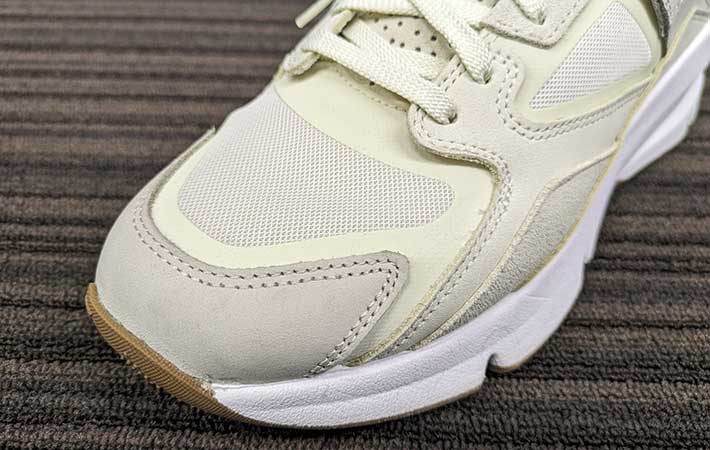 アッパーにレザーが多用されていますが、メッシュの部分は通気性がよいため、靴の中が蒸れることはありません。