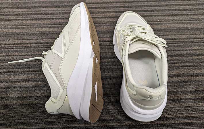 実際に履いてみると、インソールのクッション性がよくフカフカとした履き心地。一般的なスニーカーと比べても履き心地はいいといえるでしょう。