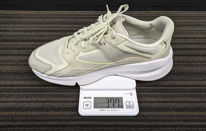 重さは平均的なスニーカー 見た目よりも軽く感じる