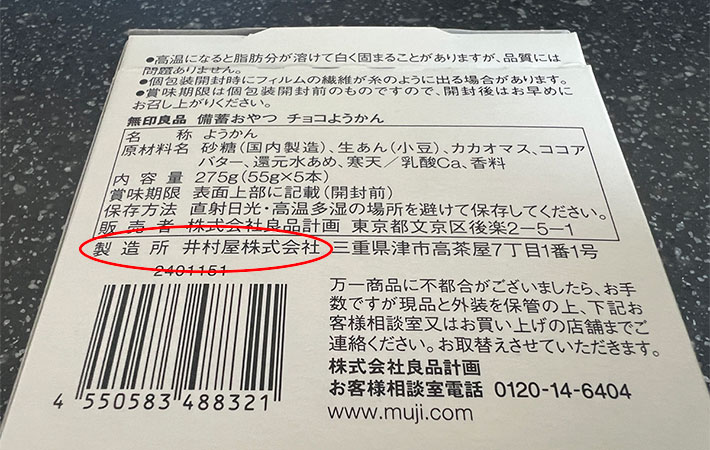 筆者が購入したのは、無印良品の『備蓄おやつ チョコようかん』。